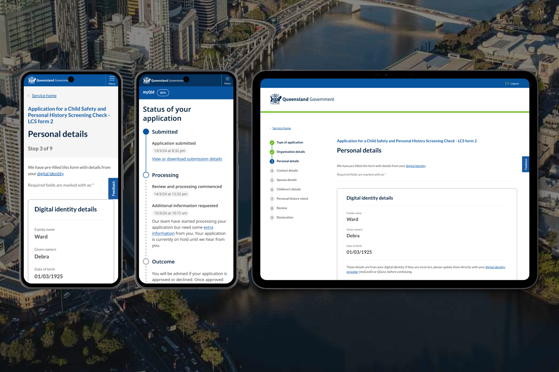 My Services, My Way is a single unified portal for all interactions with Queensland Government services. It provides a secure, shared framework where departments and agencies can design, integrate, and publish their own services.